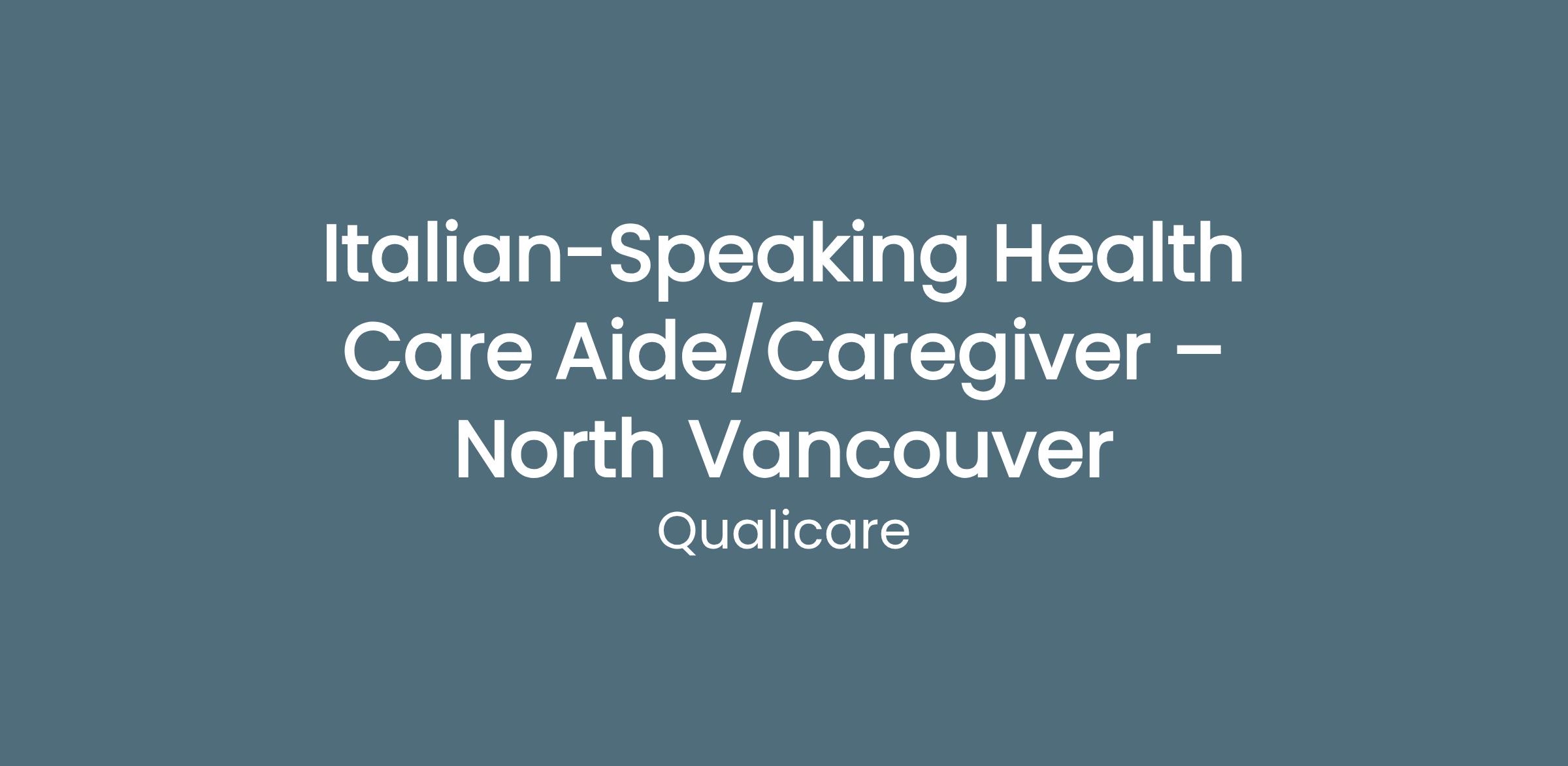 Qualicare Homecare BC is seeking a compassionate Italian-speaking Health Care Aide / Caregiver to support a client in North Vancouver (or someone willing to commute). The client is being discharged from hospital and requires personal care and companionship, as family support is limited.
