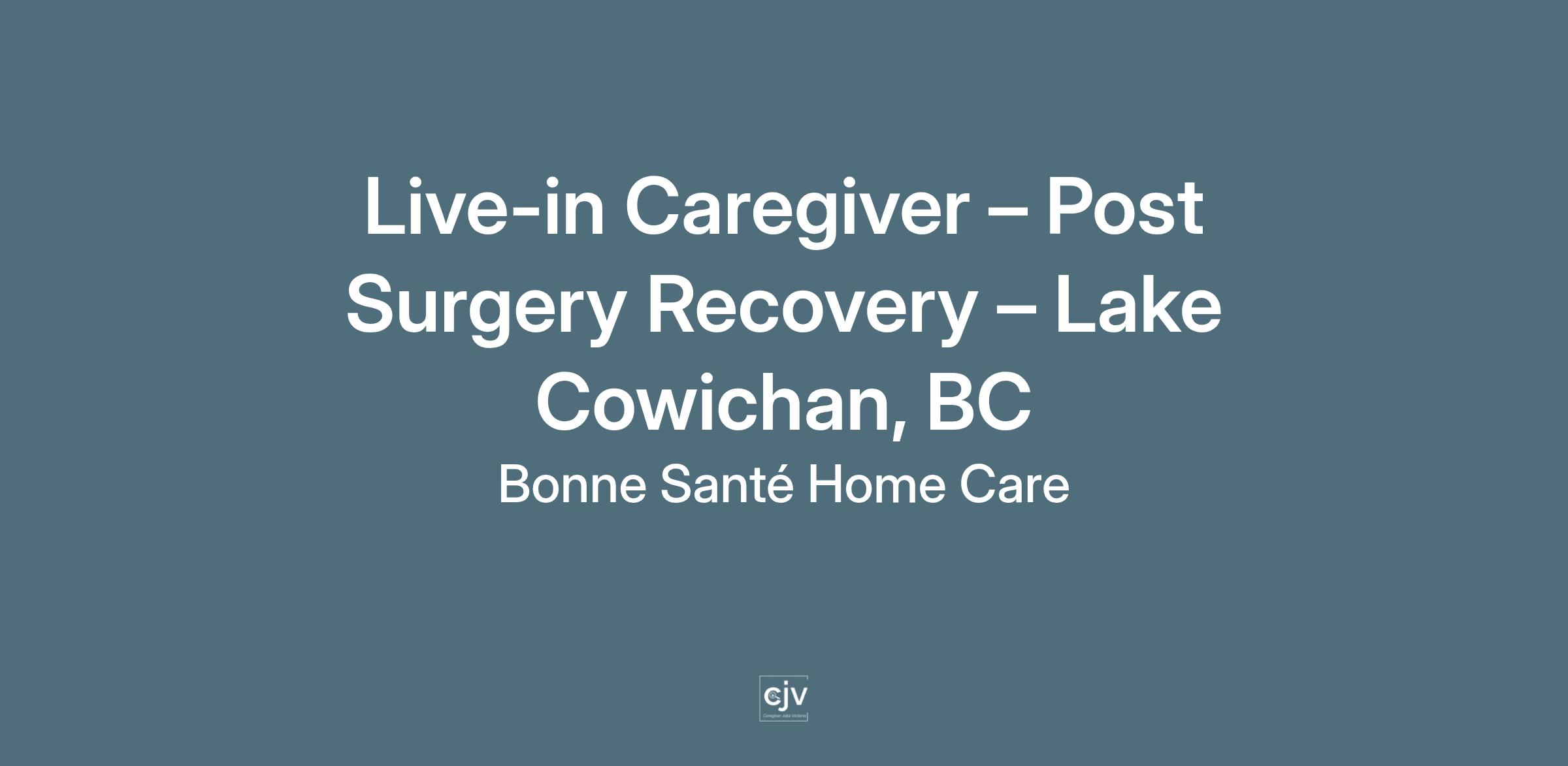 Bonne Santé Home Care is hiring a Live-in Caregiver in Lake Cowichan, BC to support seniors recovering after surgery.