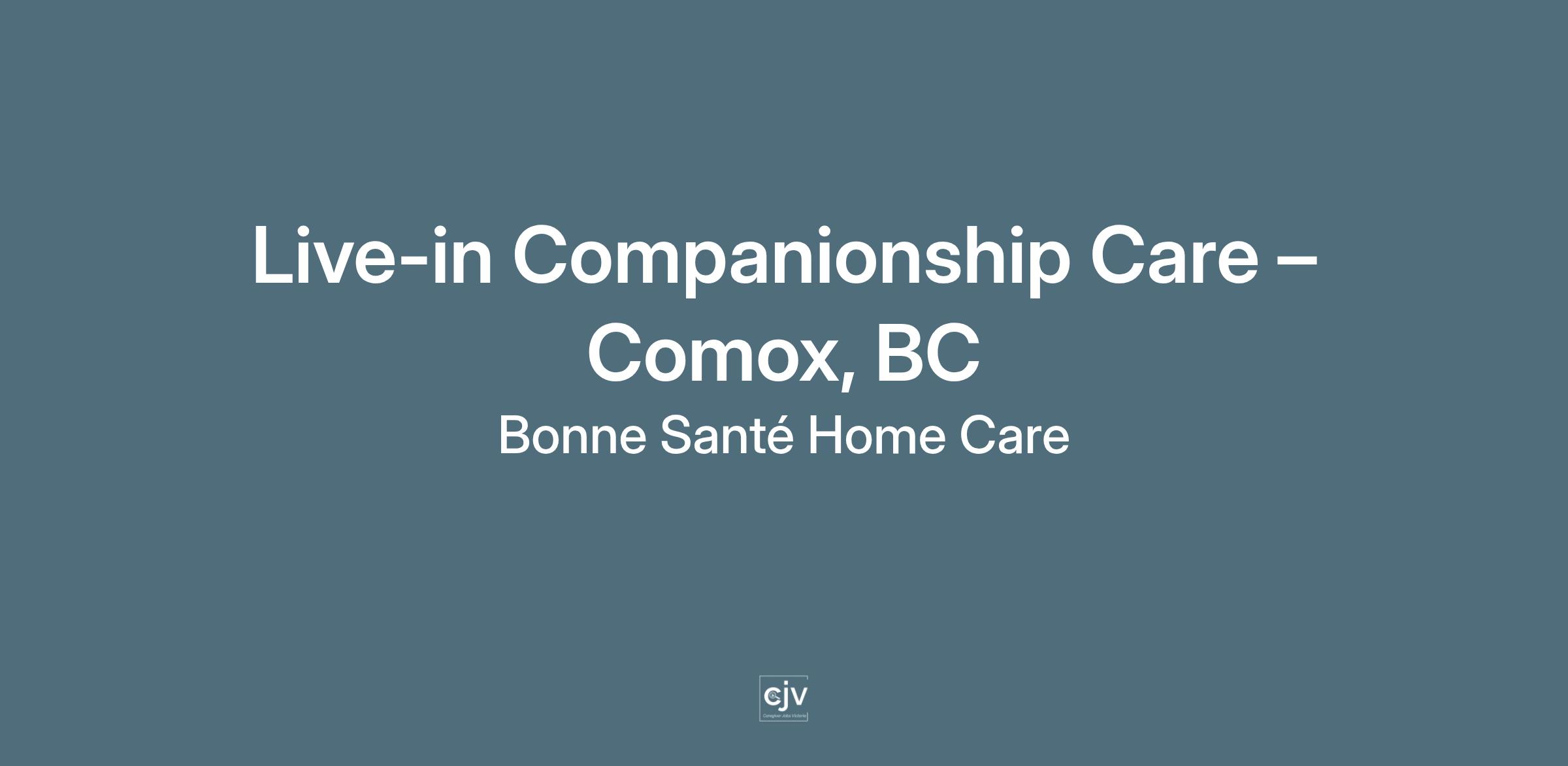 Bonne Santé Home Care is seeking a Live-in Caregiver in Comox, BC to provide companionship care for seniors wishing to stay at home with added support.