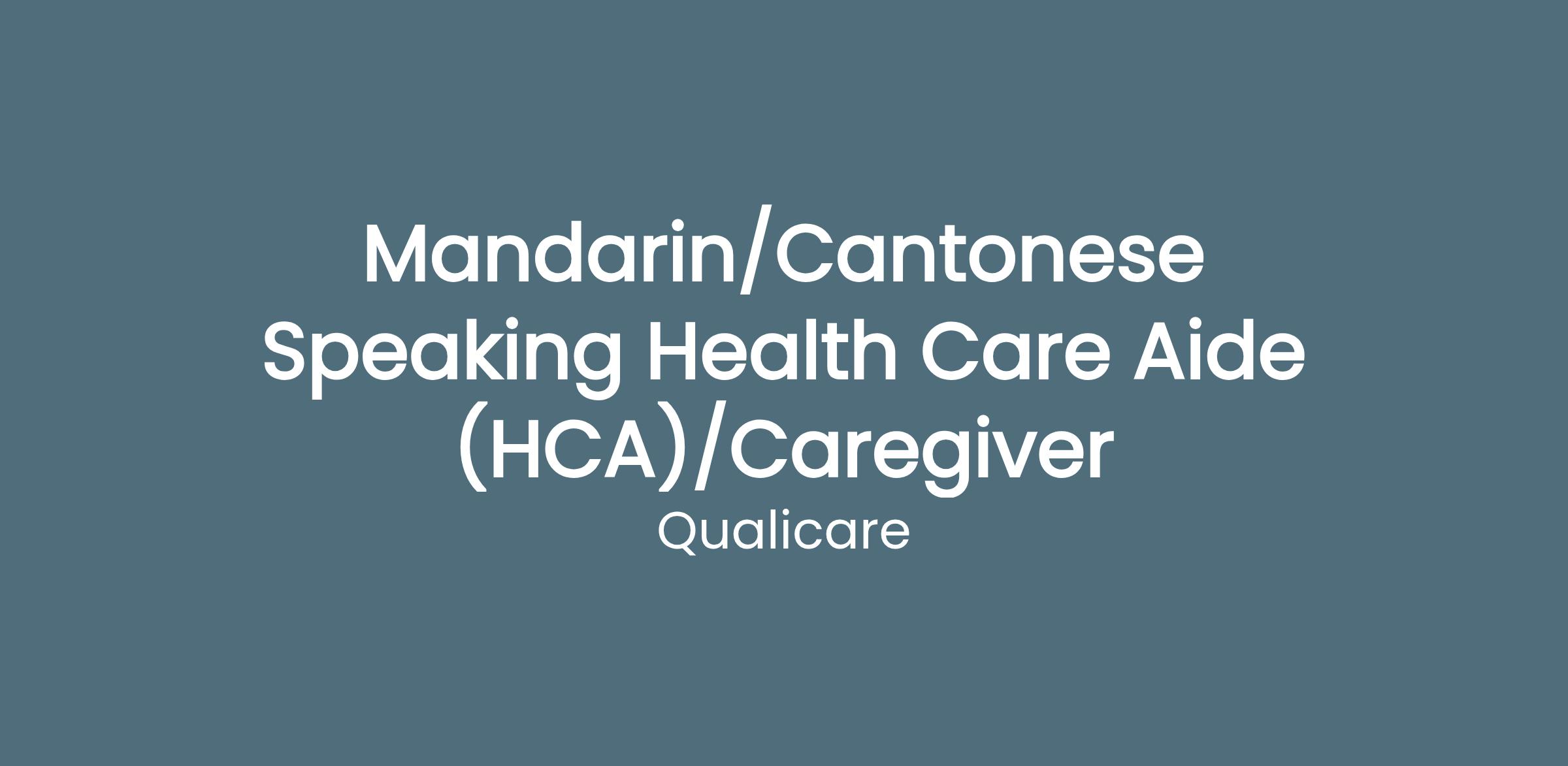Qualicare Homecare BC is actively hiring Mandarin and/or Cantonese speaking Health Care Aides (HCAs), Personal Support Workers (PSWs), and Caregivers to provide in-home care services across the Greater Vancouver Area.